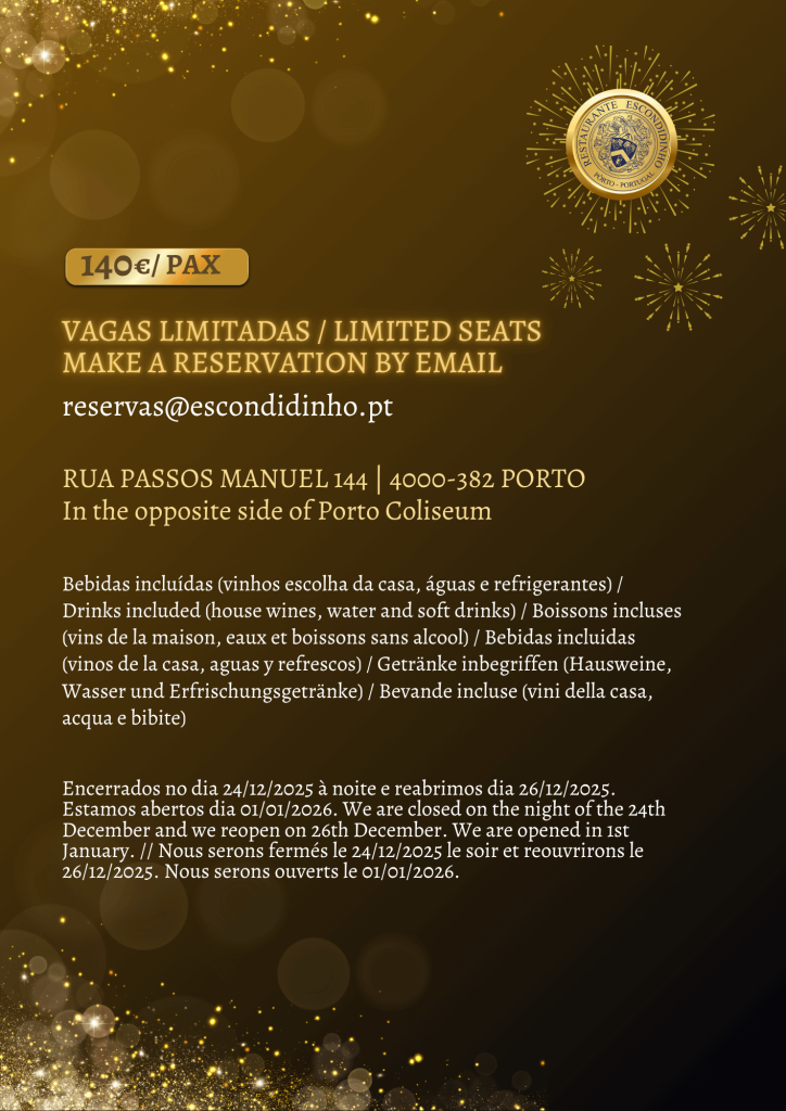 Celebre no icónico Restaurante Escondidinho uma incrível noite de Réveillon, com um menu preparado com o requinte e a excelência que a sua noite merece. ✨🥂 Os lugares são limitados, efetue a sua reserva.